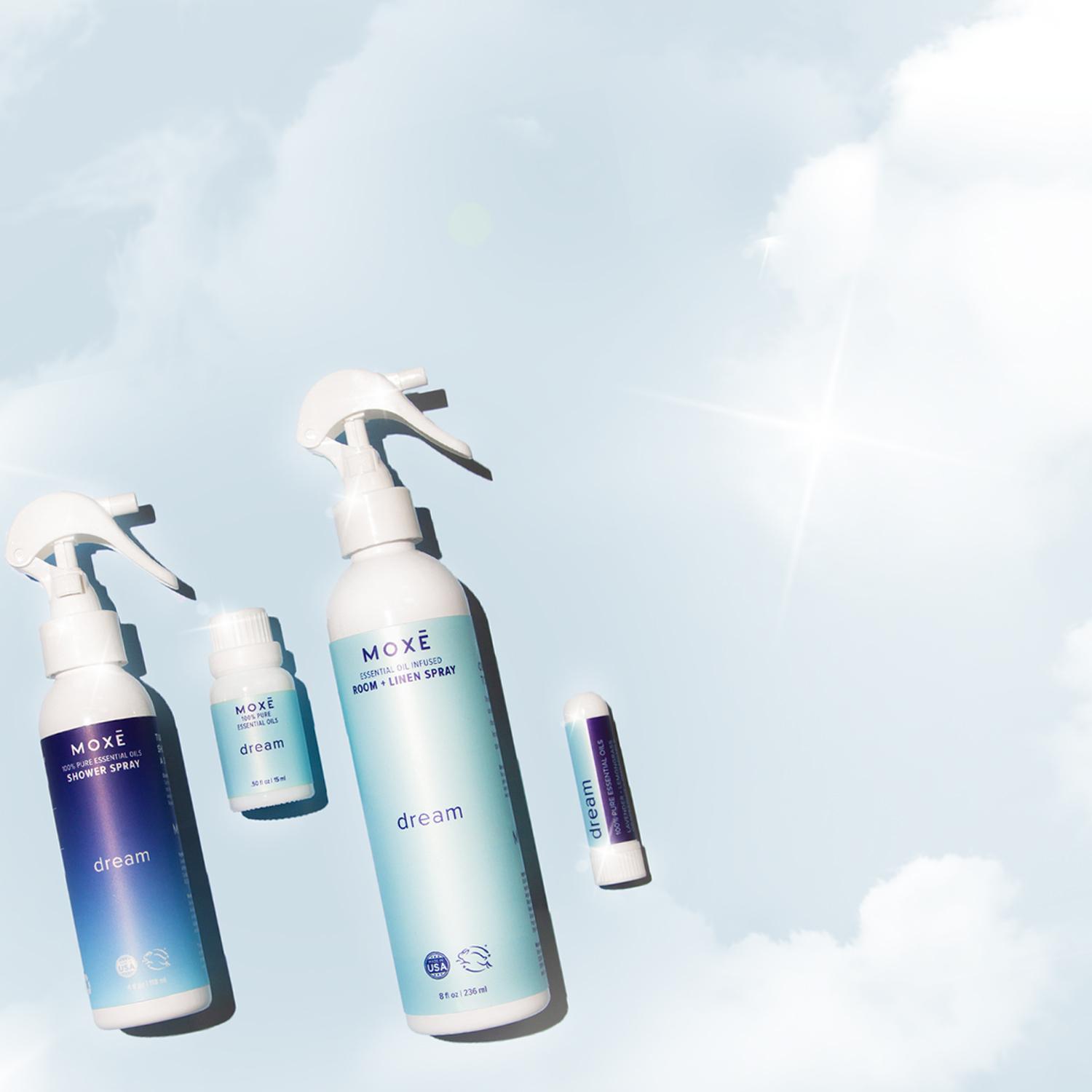 2. Diffusing Throughout Your Space- To wind down from a hectic day, add 3-5 drops of MOXĒ Dream essential oil blend to a room diffuser. Inhaling the blend during your nighttime routine calms your mind and body and gets you in the right mood to settle down for the night.