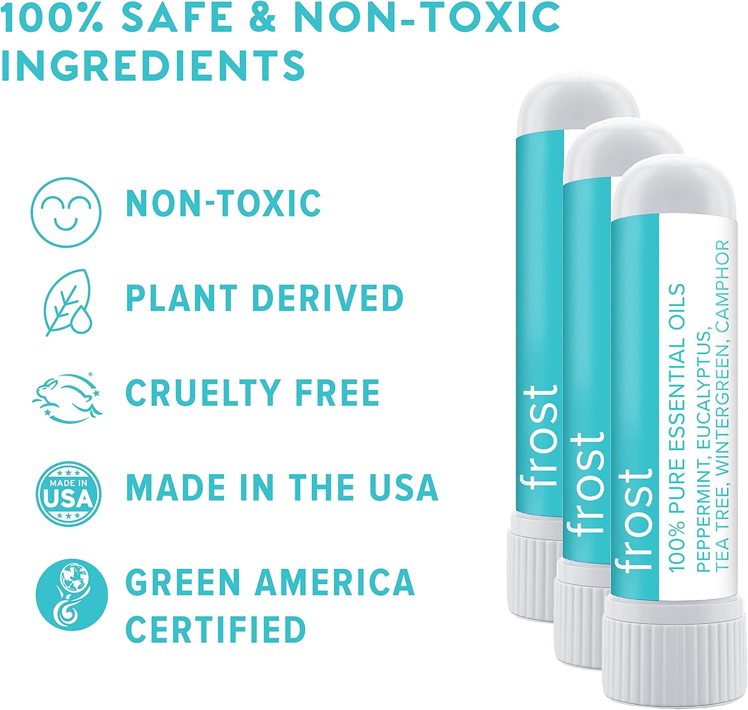 Proudly made in the USA with 100% pure steam-distilled essential oils, Frost contains no artificial additives or fillers. Its petite, portable design fits effortlessly into your pocket, purse, backpack, or gym bag—your reliable aromatherapy companion anywhere you go. Each inhaler stays potent for up to 45 days, and remains effective for up to 3 months after opening.